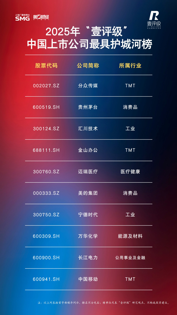 9月10日,第一财经“壹评级”在2025Inclusion·外滩大会见解论坛上发布首张榜单——2025年“壹评级”中国上市公司最具护城河榜。“壹评级”是第一财经推出的专业股票评价体系,以“提高中国资本市场的定价效率”为愿景。护城河是保障企业获得长期丰厚盈利的重要属性低息配资股票,也是“壹评级”方法论中四维评级的维度之一。本次2025年度中国上市公司最具护城河榜分为行业最具护城河分榜和最具护城河总榜。“壹评级”按照消费品、TMT、医疗健康、工业、能源及材料、公用事业及金融六大行业分类,评选出护城河最为宽阔的30家上市公司组成行业最具护城河分榜,并从中评选出10家上市公司组成中国上市公司最具护城河榜。“壹评级”在公众号上同步发布了首批上榜公司的深度评级报告,后续可在第一财经网站和APP上查看。
